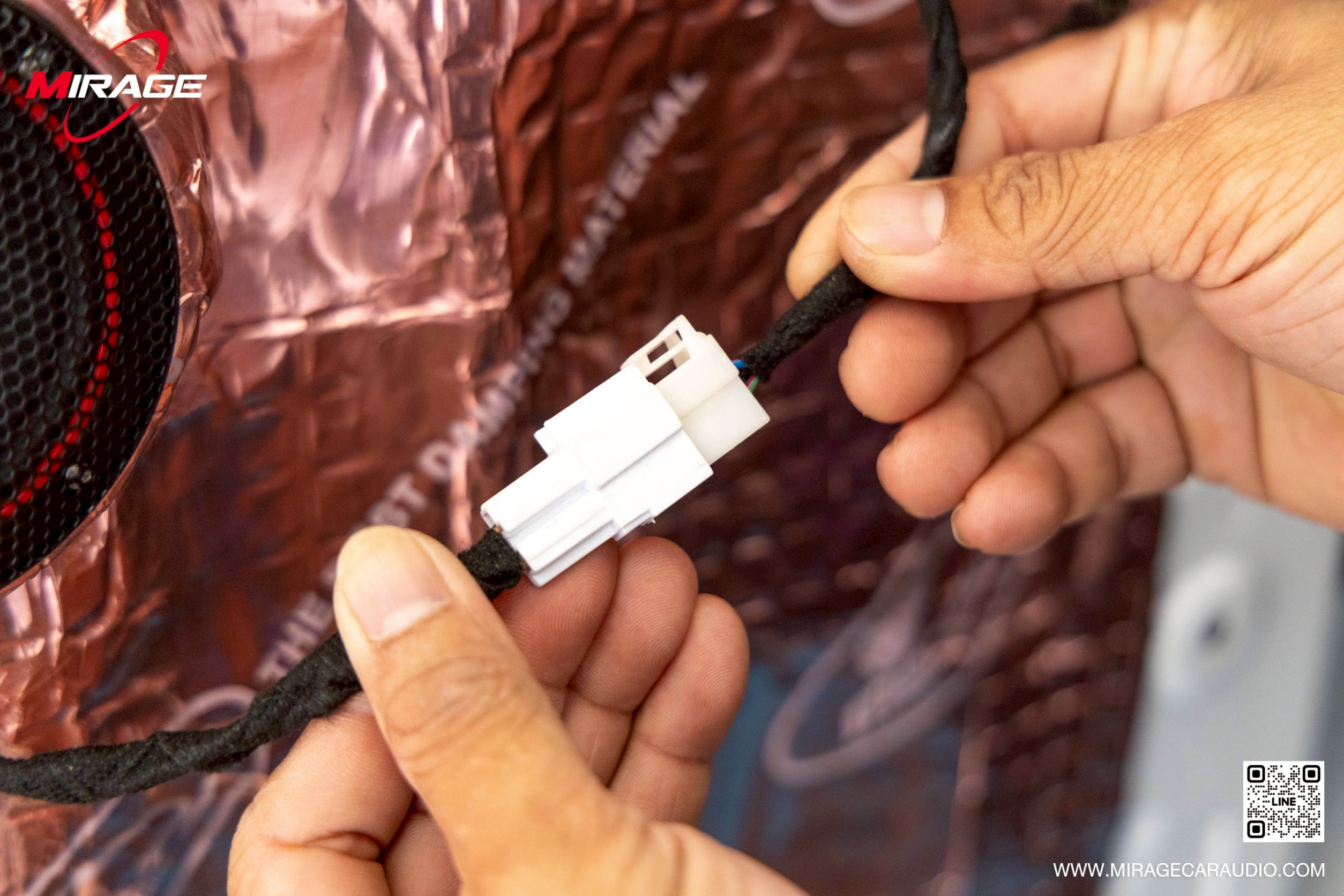 A: ไม่ขาดครับ Mirage Audio ใช้ระบบ Plug & Play 100% ผ่าน Y-Socket ไม่มีการตัดต่อสายไฟเดิมของรถ