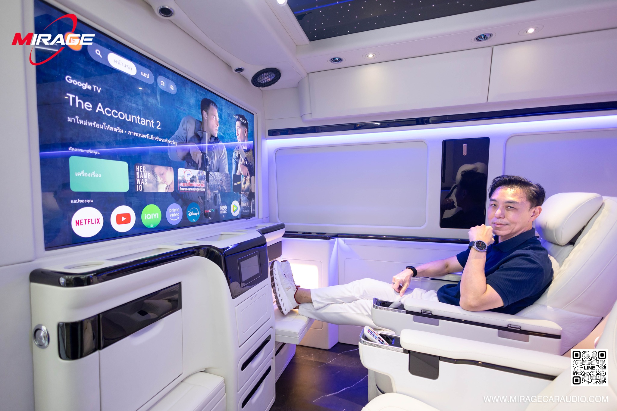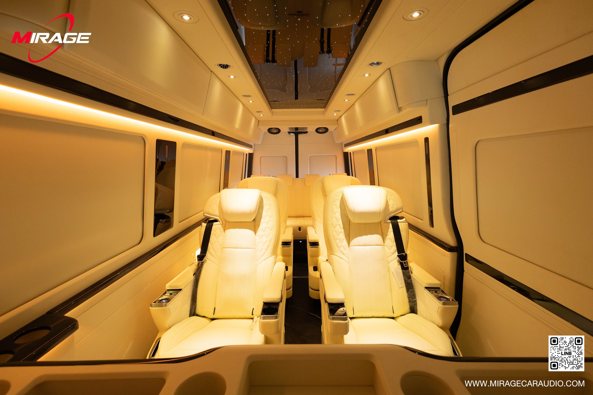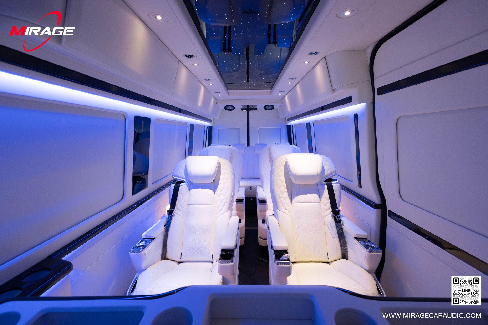 "การตกแต่ง Mercedes-Benz Sprinter โดย Mirage Audio คือการผสมผสานระหว่างยานยนต์สมรรถนะสูงและห้องรับรองระดับ First Class โดดเด่นด้วยการใช้หนัง Nappa เกรดพรีเมียม ระบบเสียง Mercury M62 จออัจฉริยะ 55 นิ้ว และหลังคา Starlight เหมาะสำหรับนักธุรกิจและครอบครัวที่ต้องการความส่วนตัว ความสะดวกสบาย และภาพลักษณ์ที่เหนือระดับบนท้องถนน"