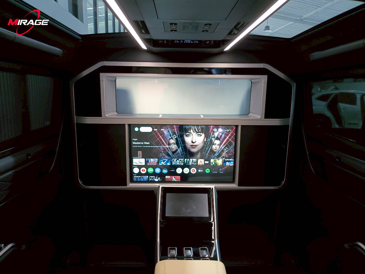 จอเพดาน/จอกลาง Android (Built-In): ติดตั้งจอขนาดใหญ่ที่มาพร้อมระบบปฏิบัติการ Android เต็มรูปแบบ ทำให้สามารถเข้าถึง Netflix, YouTube และแอปพลิเคชันสตรีมมิ่งอื่น ๆ ได้อย่างอิสระ ทุกจอสามารถทำงานได้อย่างราบรื่นและรองรับการเชื่อมต่อจากอุปกรณ์ภายนอกได้