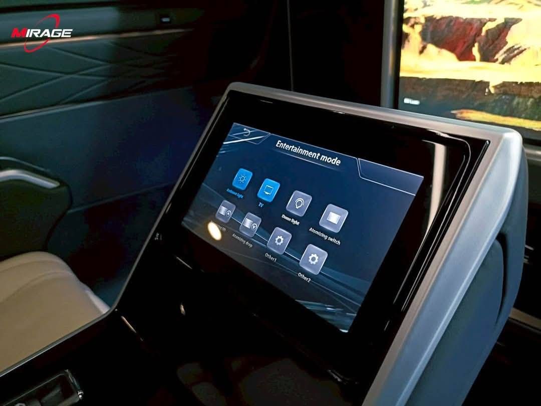 ติดตั้งระบบ Apple TV: จอเพดานด้านหลังจะได้รับการติดตั้งระบบ Apple TV โดยเฉพาะ ทำให้ผู้โดยสารสามารถเข้าถึงคอนเทนต์ระดับ Premium ได้อย่างหลากหลาย ไม่ว่าจะเป็นภาพยนตร์, ซีรีส์, สารคดี หรือรายการโปรดต่างๆ ผ่านแอปพลิเคชันชั้นนำมากมาย