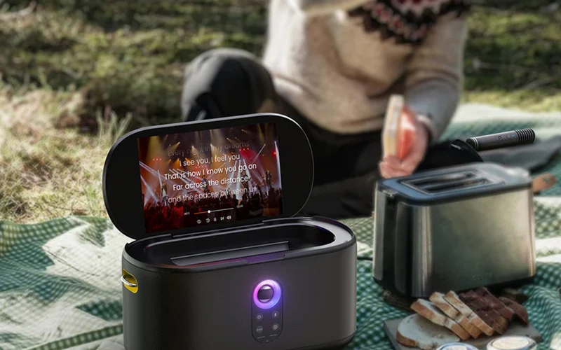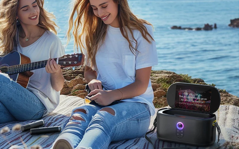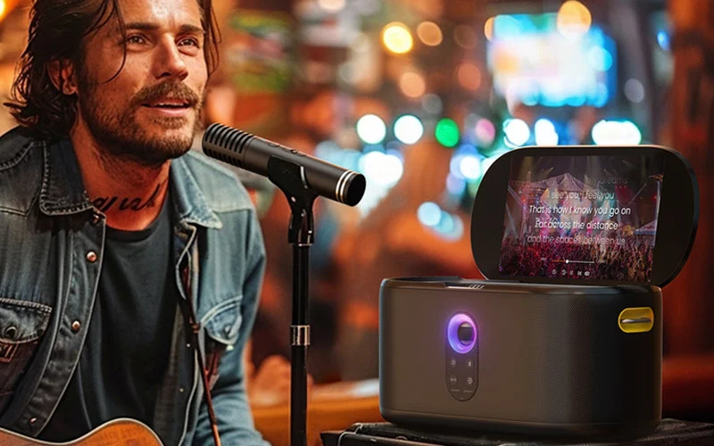 และพกพาสะดวก หน้าจอสัมผัสขนาด 8 นิ้ว ช่วยให้ทุกคนร้องเพลงตามได้