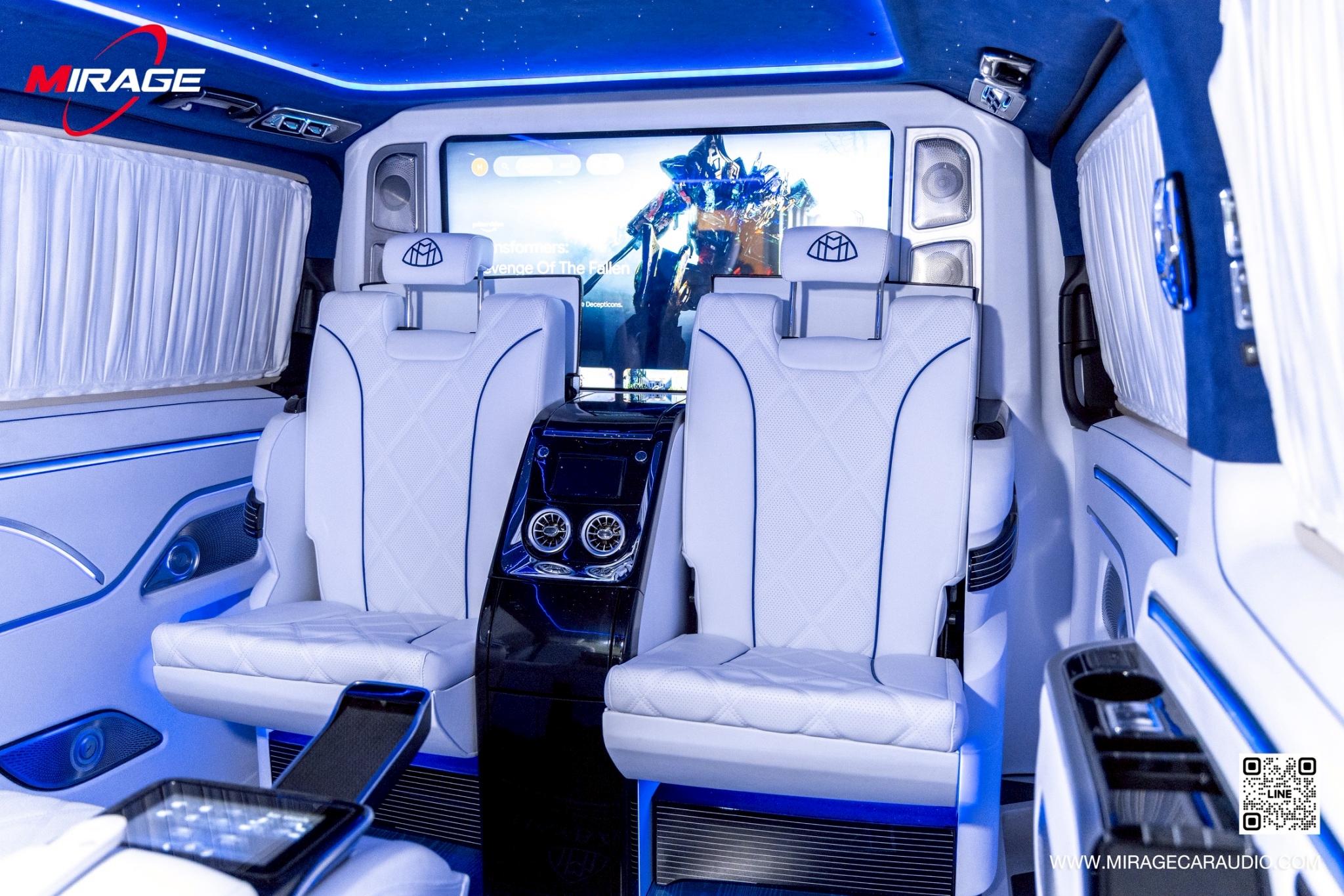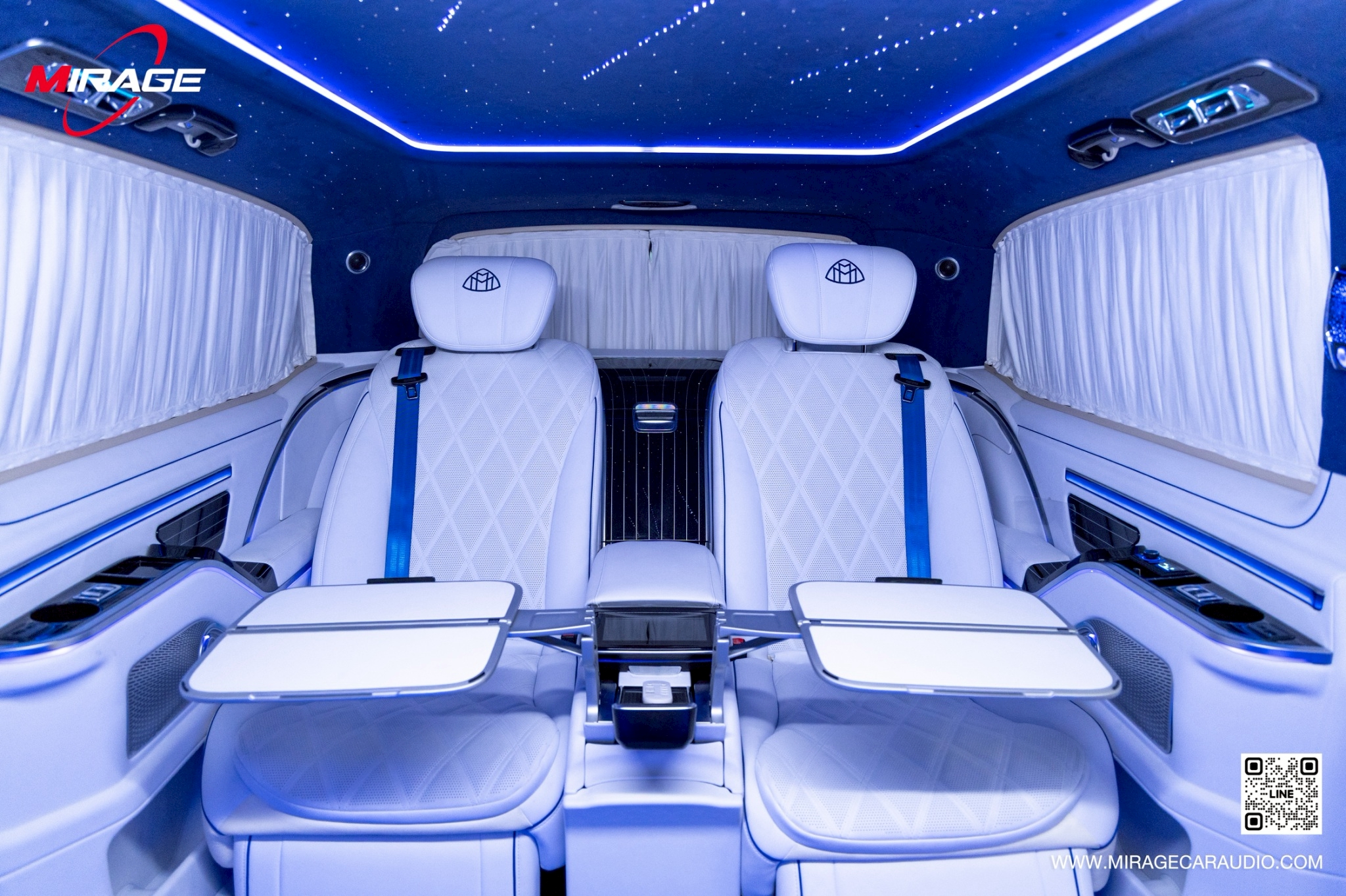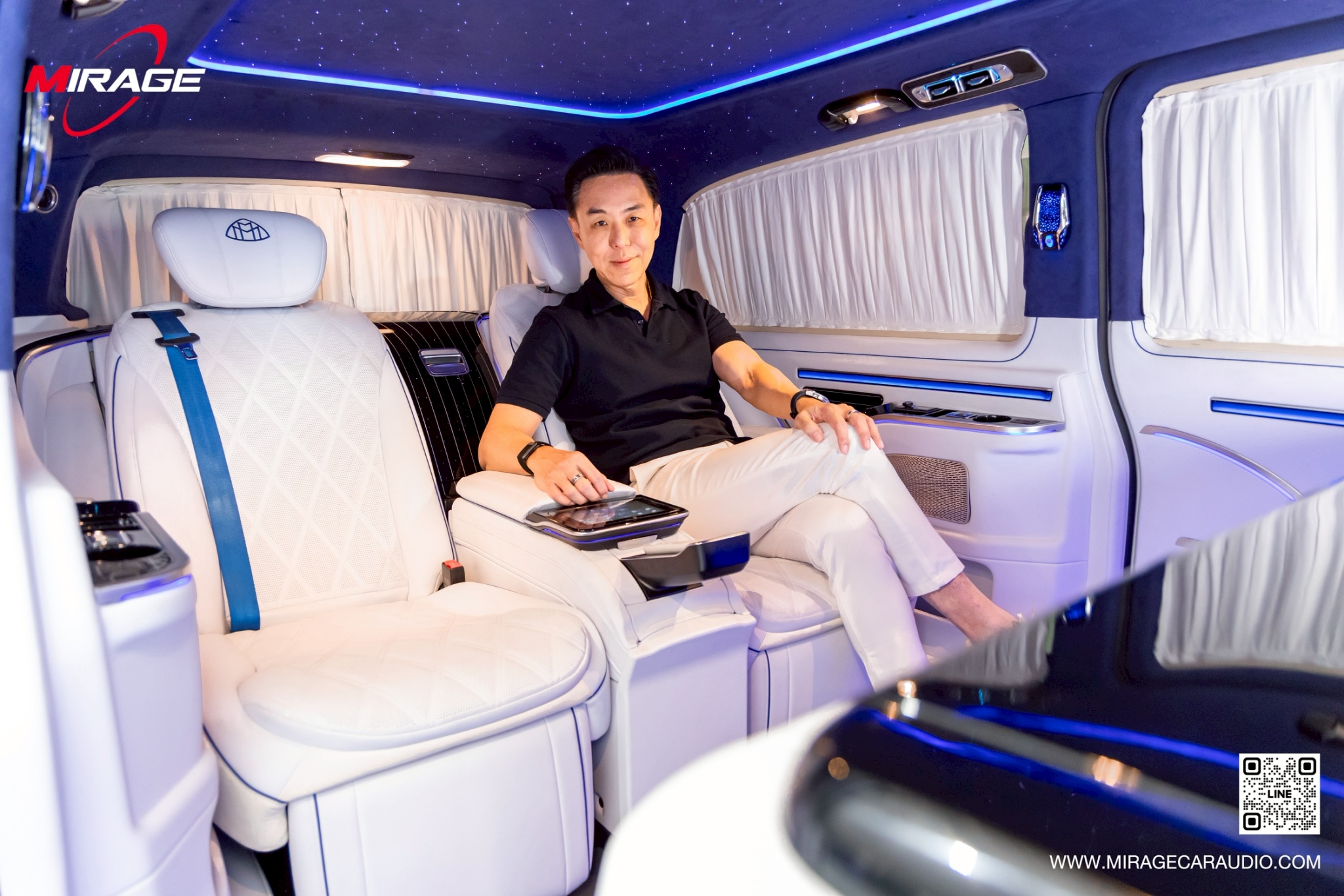 Mirage Audio เชี่ยวชาญการเปลี่ยนโฉม Mercedes-Benz Vito ให้เป็นสไตล์ Maybach อย่างเต็มรูปแบบ ครอบคลุมทั้งภายนอกด้วยชุดแต่ง S-Class และภายในระดับ Ultra-Luxury โดดเด่นด้วย Partition กั้นกลางไฟฟ้าพร้อมจอ 40 นิ้ว 4K, เบาะ VIP ปรับไฟฟ้าเต็มระบบ และระบบเสียง Hi-End จาก Mercury และ Alpine มอบความเป็นส่วนตัวและความบันเทิงระดับสูงสุด