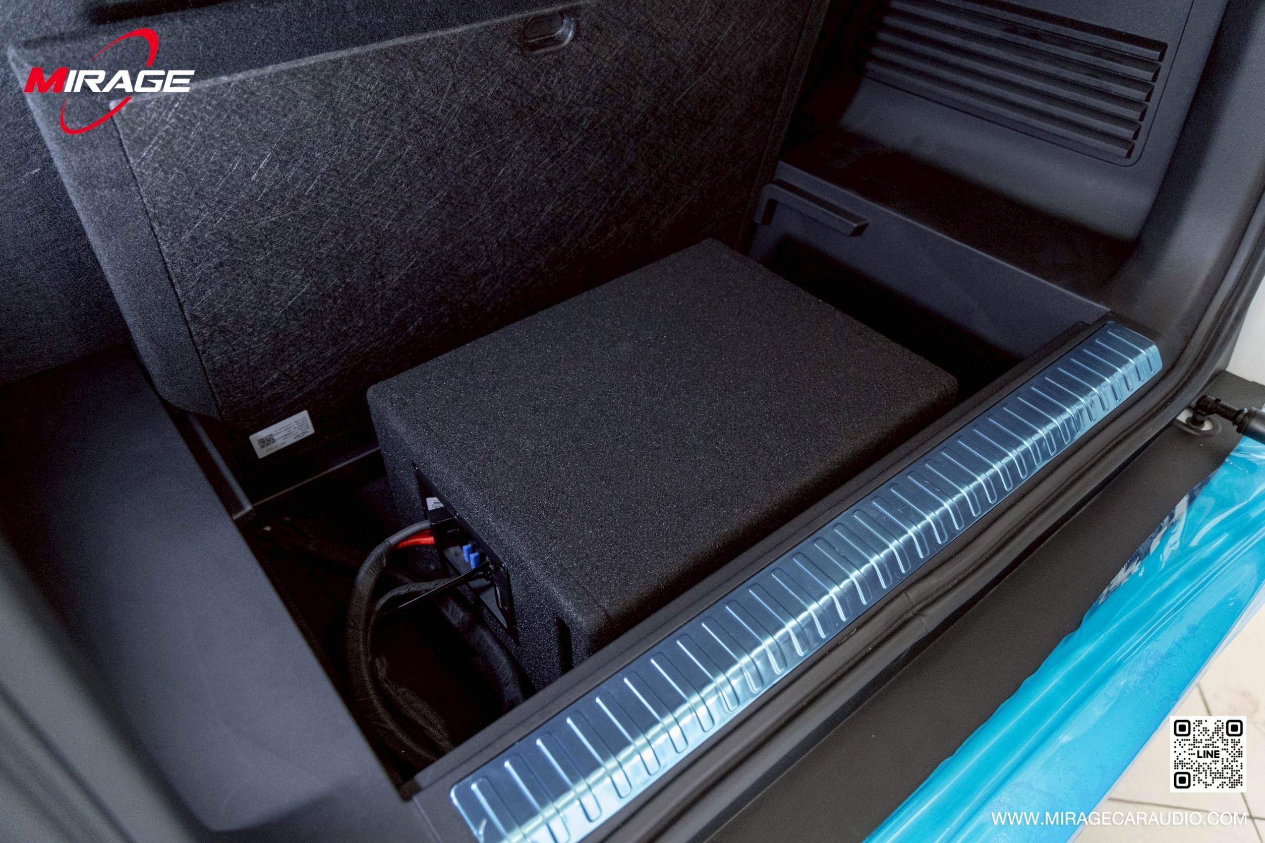 A: ไม่เสียพื้นที่ครับ เราใช้ Alpine PWE-10S4 ติดตั้งแบบ Stealth ในช่องเก็บของท้ายรถได้พอดี (Perfect Fit)