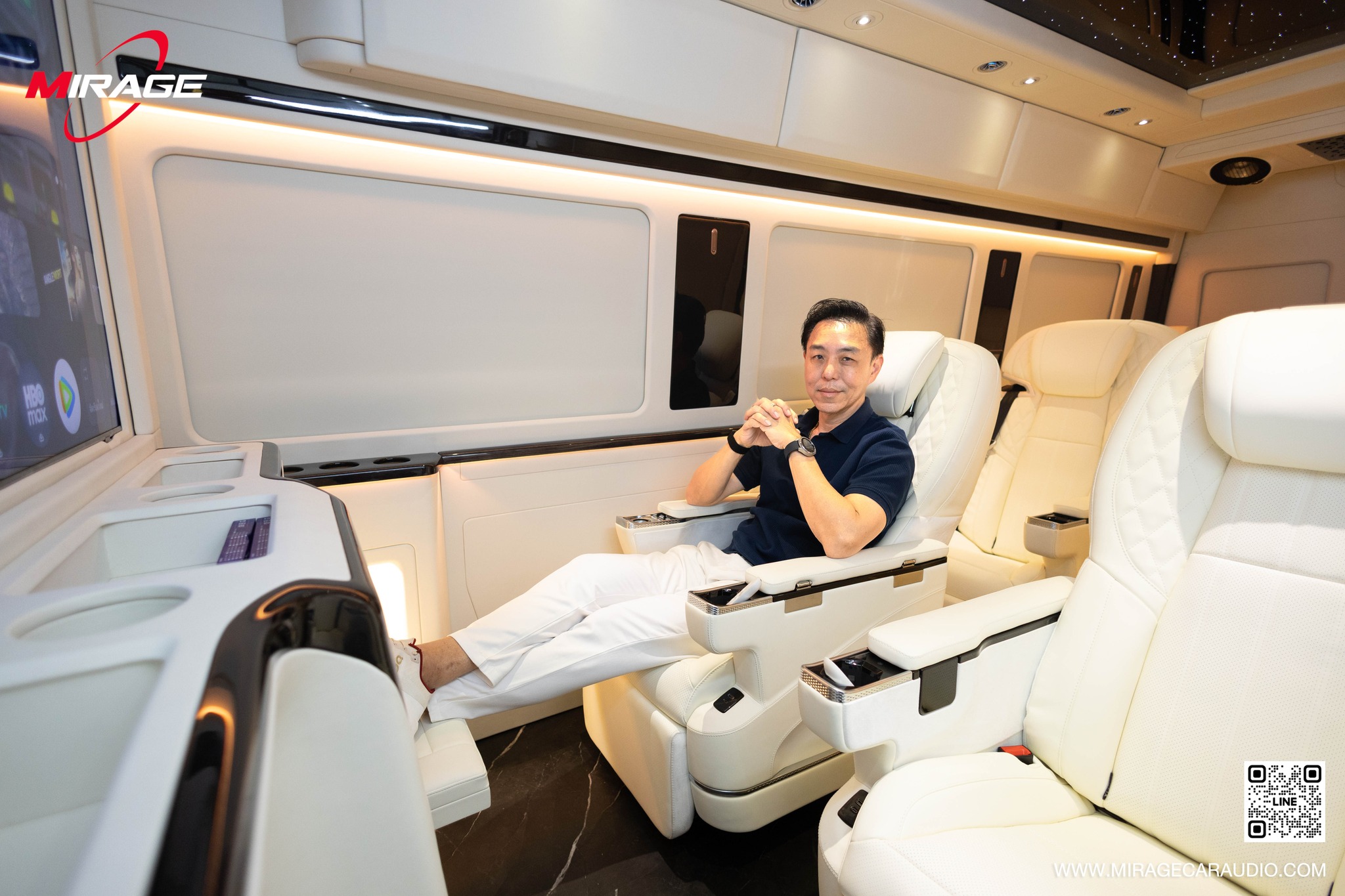 "การตกแต่ง Mercedes-Benz Sprinter โดย Mirage Audio คือการผสมผสานระหว่างยานยนต์สมรรถนะสูงและห้องรับรองระดับ First Class โดดเด่นด้วยการใช้หนัง Nappa เกรดพรีเมียม ระบบเสียง Mercury M62 จออัจฉริยะ 55 นิ้ว และหลังคา Starlight เหมาะสำหรับนักธุรกิจและครอบครัวที่ต้องการความส่วนตัว ความสะดวกสบาย และภาพลักษณ์ที่เหนือระดับบนท้องถนน"